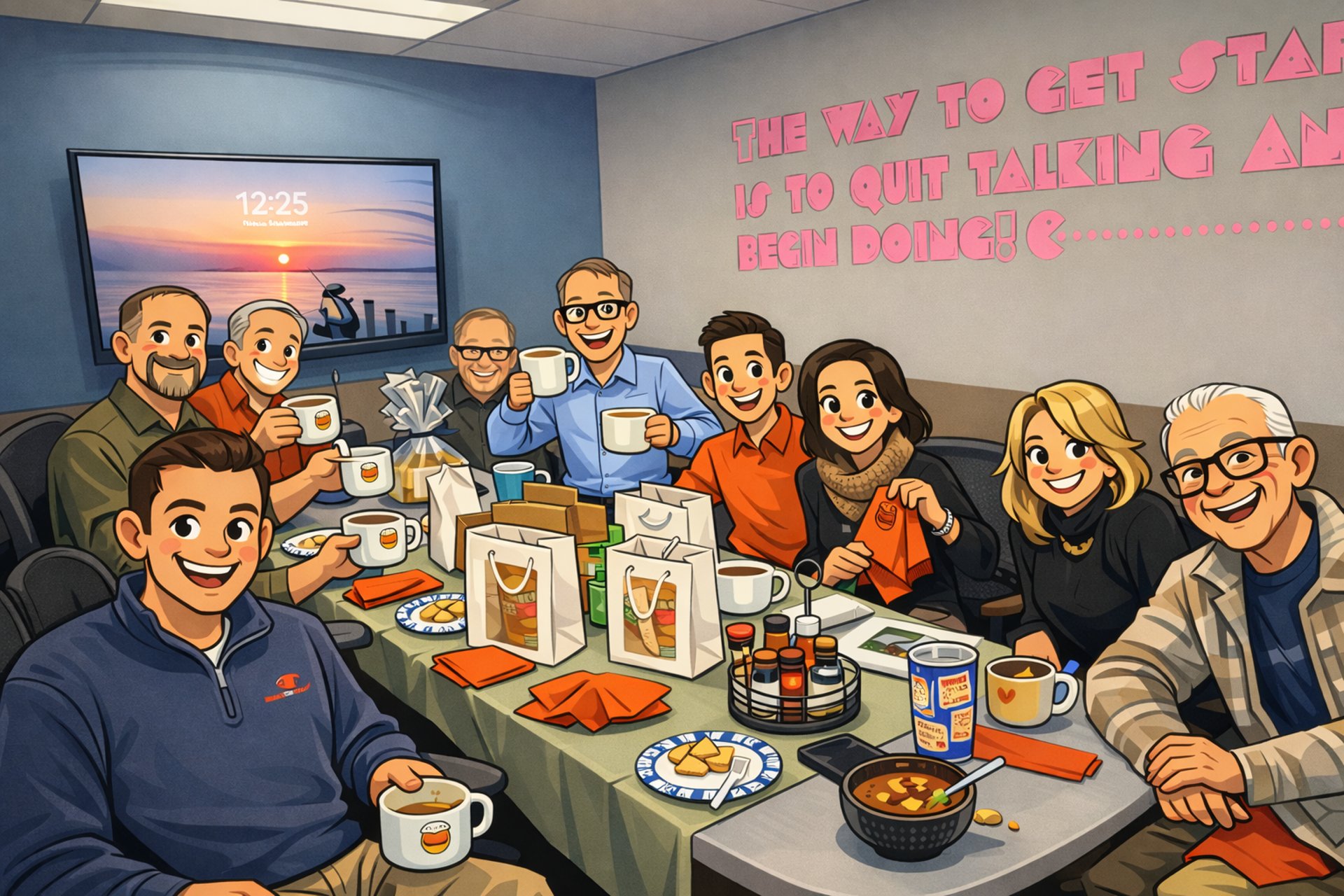 Soup Club kicked off in the spring of 2025 when Andy Yavello (Justy) and Jeff Spurgess decided life needed more… soup. And honestly, we also figured if we had a Soup Club, we wouldn’t have to pack as many boring lunches every week. Win-win.