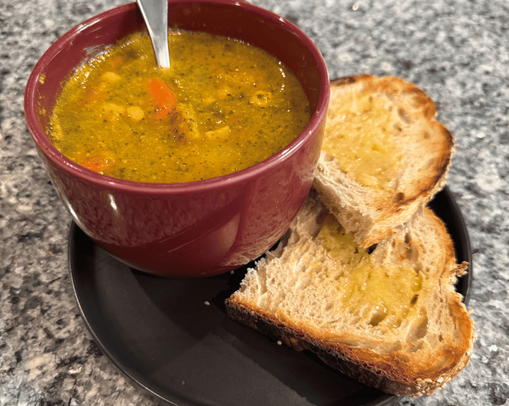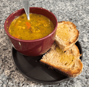 All in all, it was a bonus blog for a bonus soup. Everyone raved, no one fainted, and a few might even consider swapping a burger for a bean next week. If that happens, I’ll call it a win. So cheers to the Lunch ’n Learn tradition Tam started, and a few more lentils finding their way into the world. Eat plants. Feel good. Tell Barry to keep his fingers out of it.