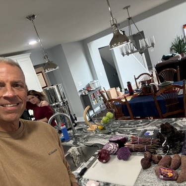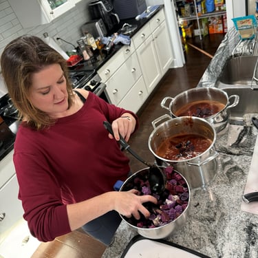Jenn and I made a whole adventure out of gathering ingredients. We went to four different grocery stores hunting for anything purple. It turned into a full-blown antioxidant scavenger hunt. Picture two adults in the produce section seriously debating whether something is purple enough to qualify. At one point an employee asked if they could help. We told them we were making purple soup and needed purple vegetables. The look on their face was priceless, a mix of confusion and amazement, as if they were thinking, “why didn’t I think of that.”