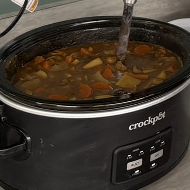 The shopping trip itself was… mostly successful. I gathered the mushrooms, lentils, potatoes, carrots, and the all-important Guinness. However, somewhere between the produce aisle and checkout, I completely forgot the cabbage that was supposed to round out the stew. By the time I realized, I was already home and committed. So this week’s lesson is that cabbage is apparently optional, but both myself and Kevin duly noted that it would’ve really levelled up this soup.