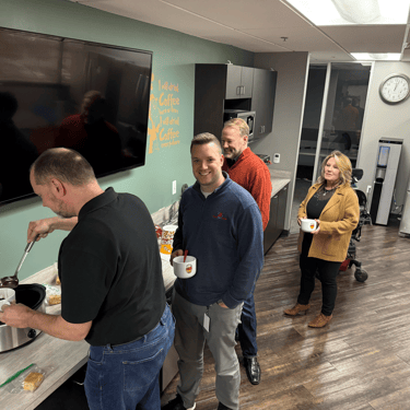 The long drive into work was stressful. Soup transport is a common topic during our Tuesday meetings. I wish I lived close enough to drive home at lunch, and then show up like Adam. He is our newest member and within two weeks is already asking why he waited so long to join. The man is hooked.