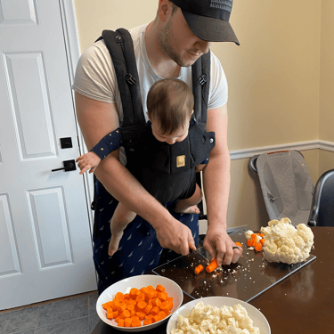 Sunday was soup day. I spent several hours chopping and cooking, which sounds leisurely until you factor in the reality that I was also caring for a toddler and a baby. At one point during prep and chopping (actually, most points) I had my daughter strapped to my chest in a baby carrier.