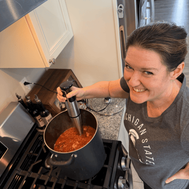 Now, I’ll let you dive into the ingredient list on the recipe card over on the Partner’s Page, but I’ll give you the highlights. Lots of good stuff. Sneaky amounts of spinach buried in what I’m calling the “broth.” And I’m using quotes on broth because this thing is too good to be called broth. It tastes like pizza sauce joined a circus. Rich, savory, layered, all the things you want, but somehow in a “healthy-ish” liquid form. Suspiciously good.