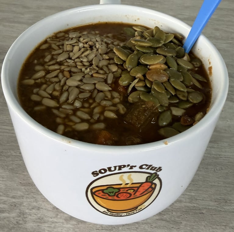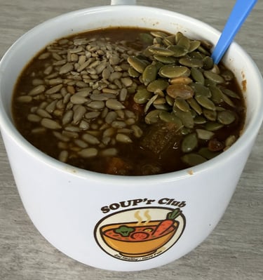 All of our Soup Club creations are made with real, wholesome ingredients—think fresh veggies, beans, grains, lean proteins, herbs, and natural seasonings. No weird additives, no refined sugars, no mystery powders. Just the good stuff.