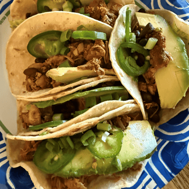 Then there was the jackfruit. I have bought the processed, heat-and-eat stuff before and was pretty underwhelmed. This time we went full can-of-jackfruit and built it into tacos ourselves.