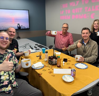 All in all, this was a solid Soup Club day with good soup, better bread(so I’m told), and great conversation behind closed doors. We had high hopes that Adam and Marco would join us this week, but that was... unclear. Marco was spotted grabbing some Soup Club food but didn’t officially participate. So, kinda joined? Maybe? Adam is still a Soup Club mystery man. He lurks. He sneaks. He’ll appear one day, I’m sure.