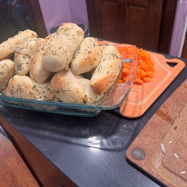 So today we celebrate Tam (and Ed) for pulling off a solid 8.675 with a blended tomato soup. The bread stole the spotlight, TGMB behaved himself, and the rest of us left full and happy.