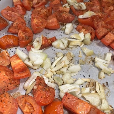 Today’s creation: a blended tomato soup. Official name? Unknown. Ingredient list? Classified. Recipe? Missing in action. We do, however, have photo evidence of husband Ed in full soup-prep mode, so my guess is Ed made the soup while Tam handled the bread. Team effort.