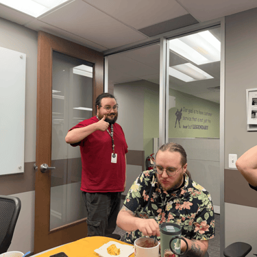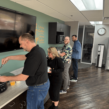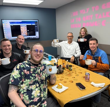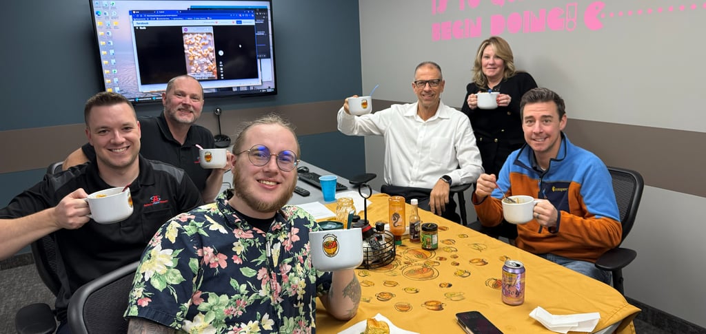 Lo and behold, there was silence, a few soft blows on spoons to cool the temperature… and a resounding chorus of “mmmm”. Midwestern comfort in a cup. The most notable comments were on the perfection of the bean texture, the smokiness of the fire roasted tomatoes, and the heartiness of it overall. Everyone left full, happy, and recharged for the day ahead. Ratings came in favorable, Jeff and Kevin with an 8.5, Andy with an 8.2, Tam with an 8.8, and Adam with a whopping 9.5 that had everyone nearly falling out of their seats. This chili landed an average 8.7, not including Felton’s unofficial rating of 8.0.