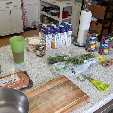 Ideas for soups come from all places with the best coming during our Soup Club! This one came from Jeff and I discussing our Chicago ACA trip last Fall. We had a bunch of soup during this trip and I believe we were served a version of Italian Wedding soup. It was not good at all, one bite was enough for us to send it back. Discussing this gave me the idea to combine what I just saw on the Internet, Binging with Babish, where Italian meatballs were made at different price points. Once of these options was using lentils instead of meat to save money. So inspired by this, having vegetarian options requires more creativity, my soup was born.